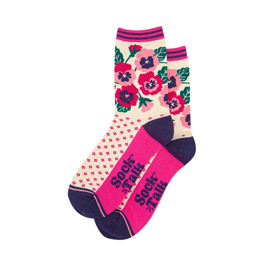 Ladies bamboo socks - Pink pansies