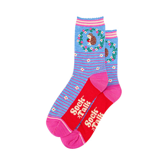 Ladies bamboo socks - Hedgehog floral wreath