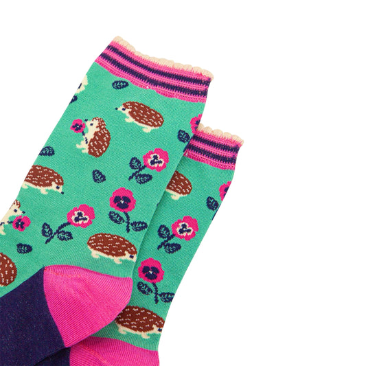 Ladies bamboo socks - Hedgehog & flowers