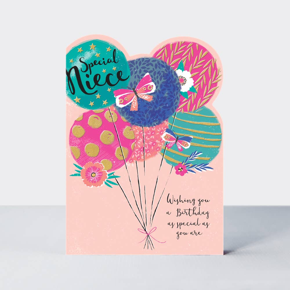 A bright and cheerful 'special niece' birthday card featuring a die-cut shaped top, textured board, and beautiful gold foiling. Perfectly finished with a zingy envelope!