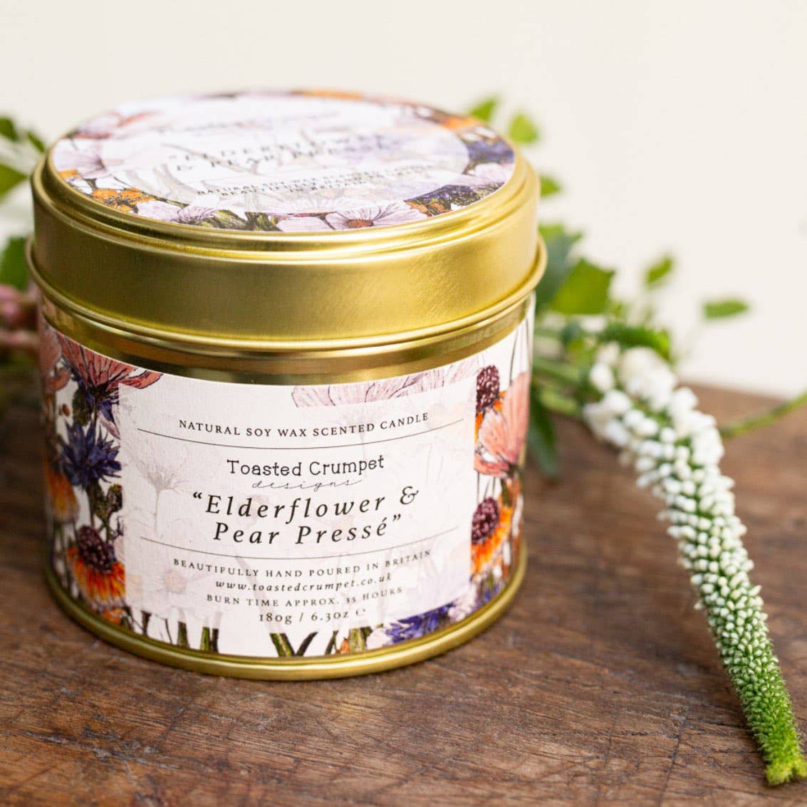 Our 100% natural wax candles are hand poured in Britain, presented in a matt gold lidded tin.