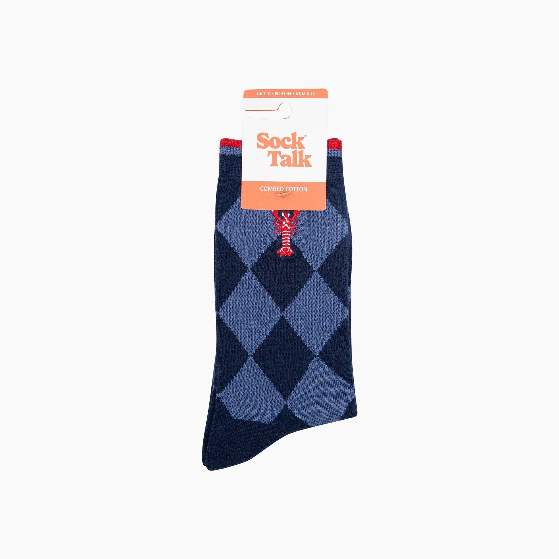 Embroidered Lobster Argyle Combed Cotton Socks in Navy Blue