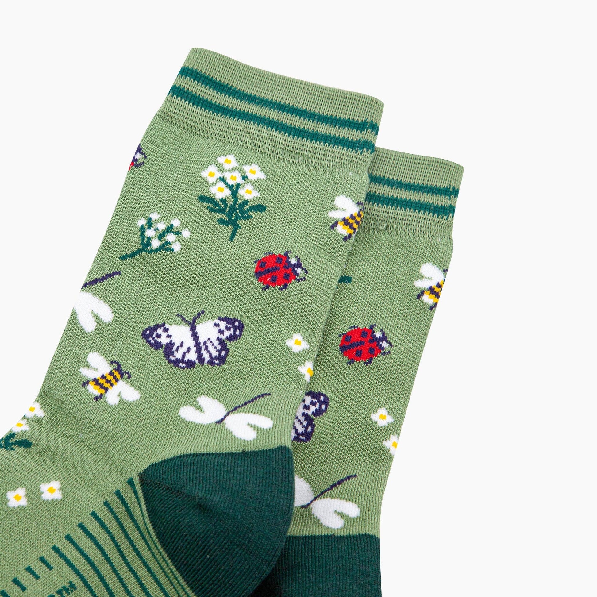 Garden Ladybird & Butterfly Bamboo Socks in Green