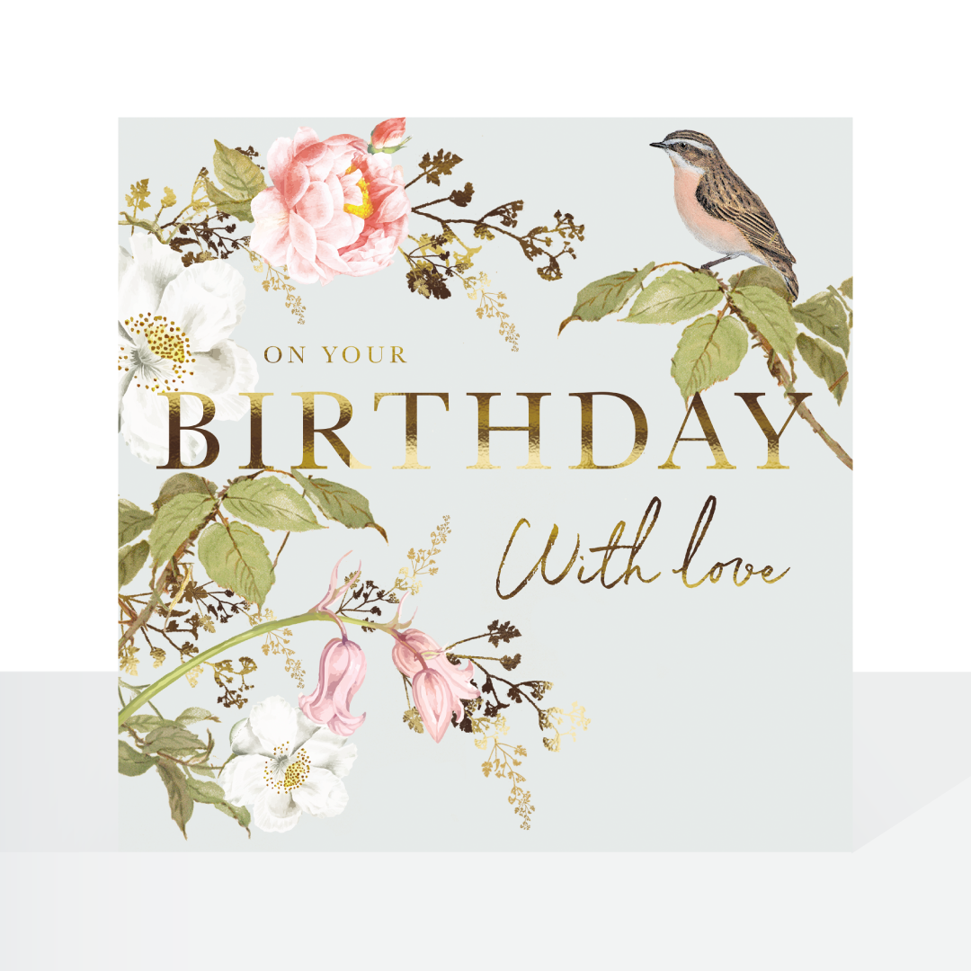 Meadow cottage bird & floral - birthday card